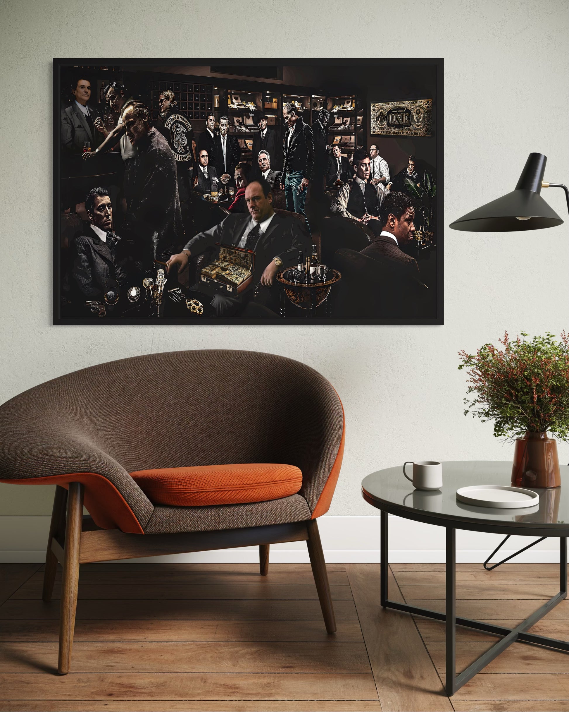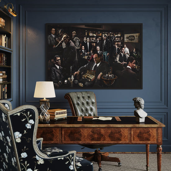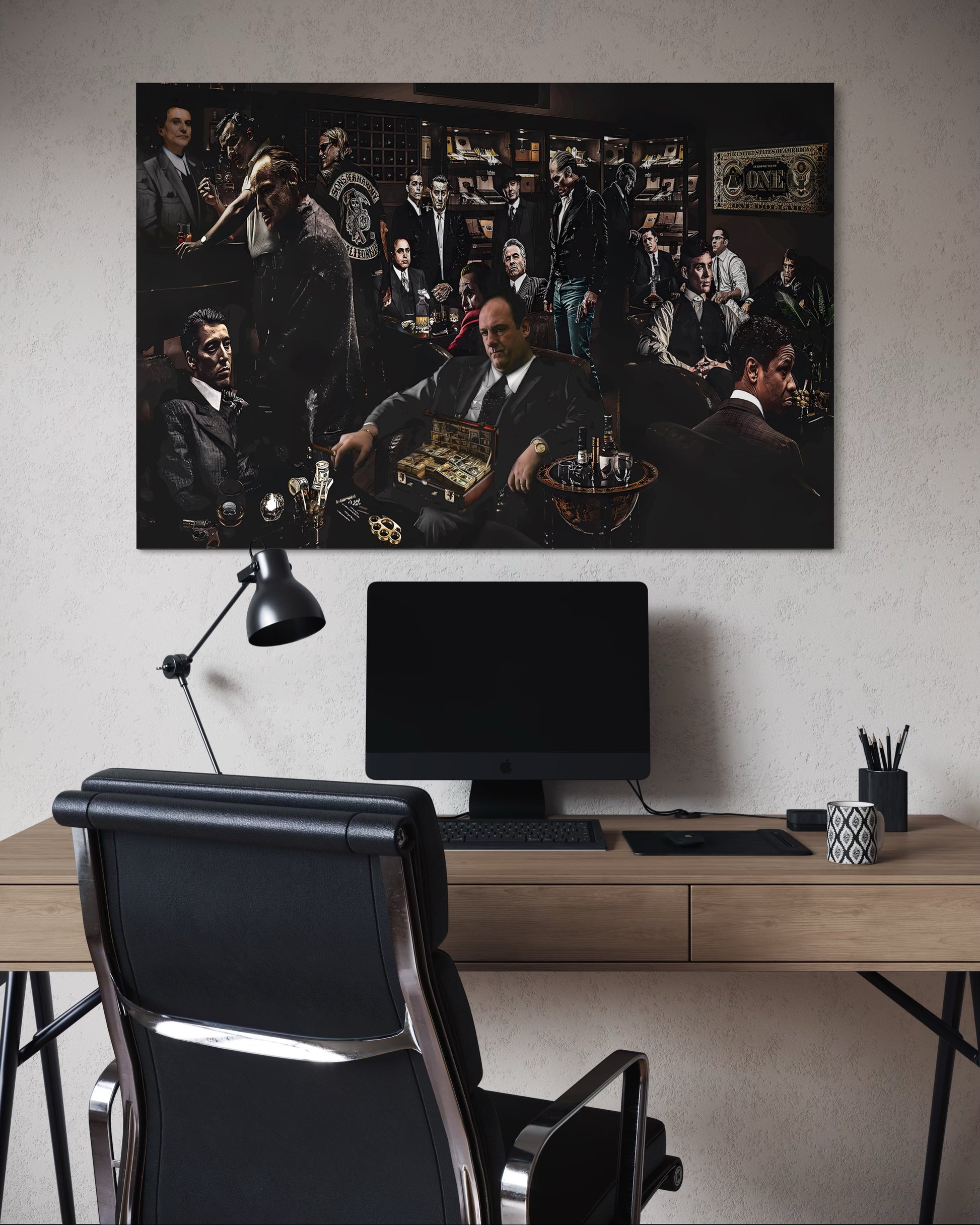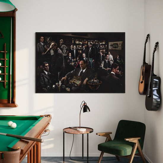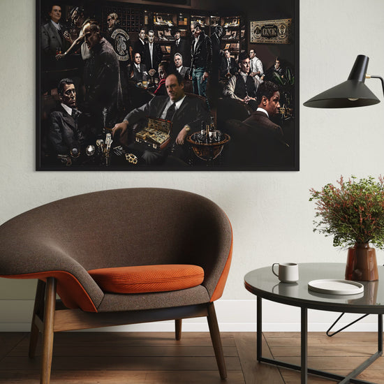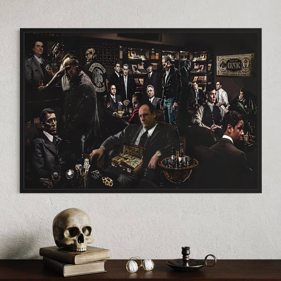 Art design: A bold collage featuring iconic movie gangsters—brings cinematic style to any room.