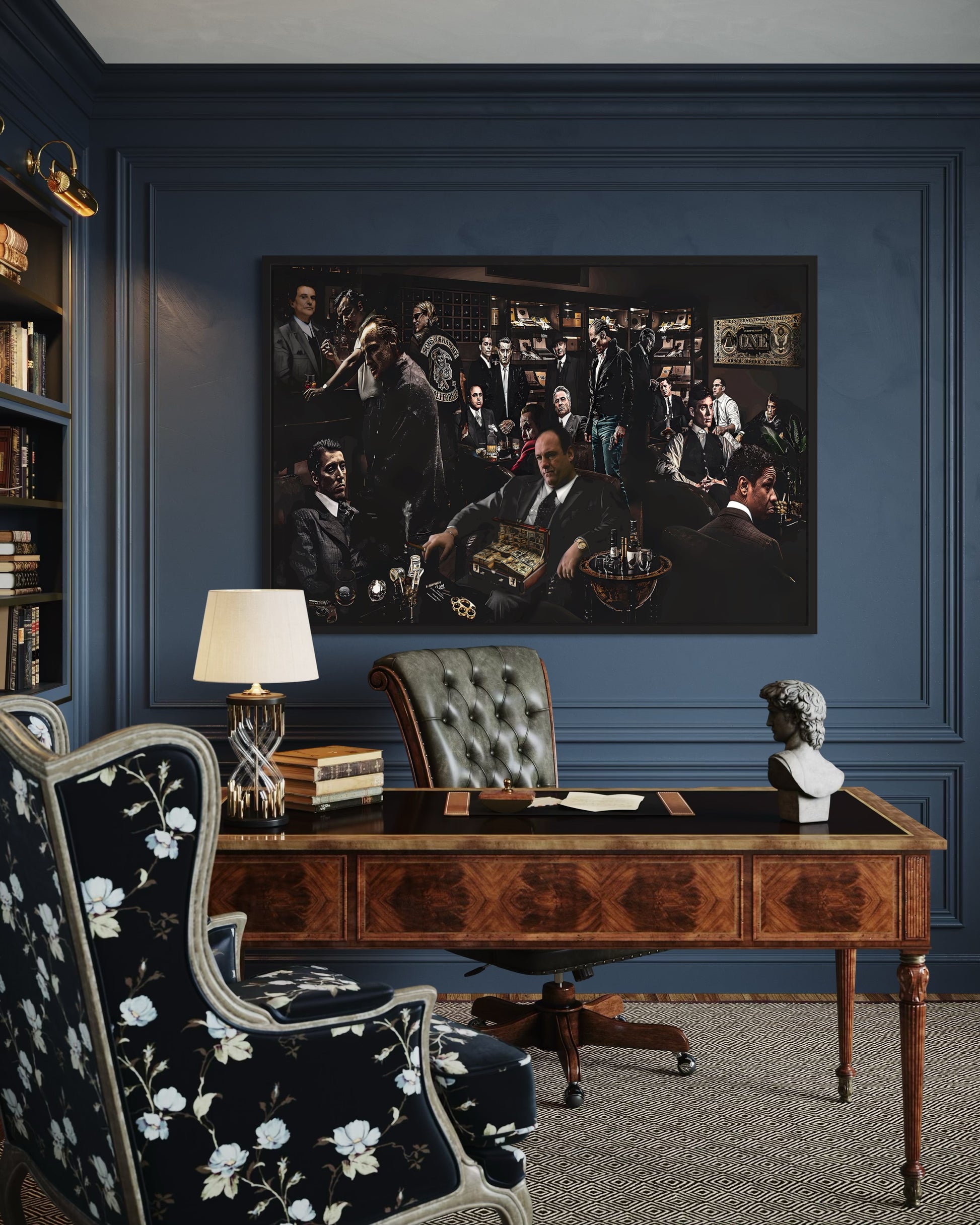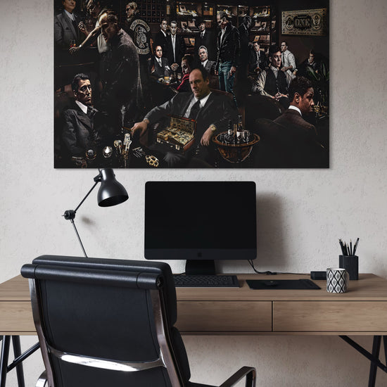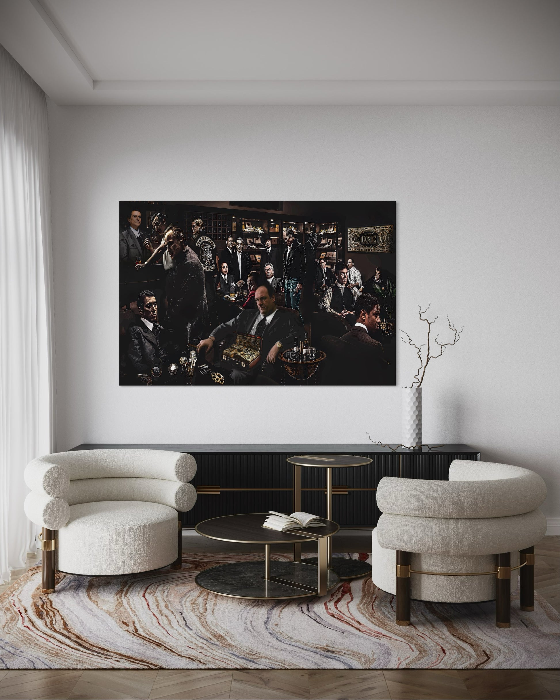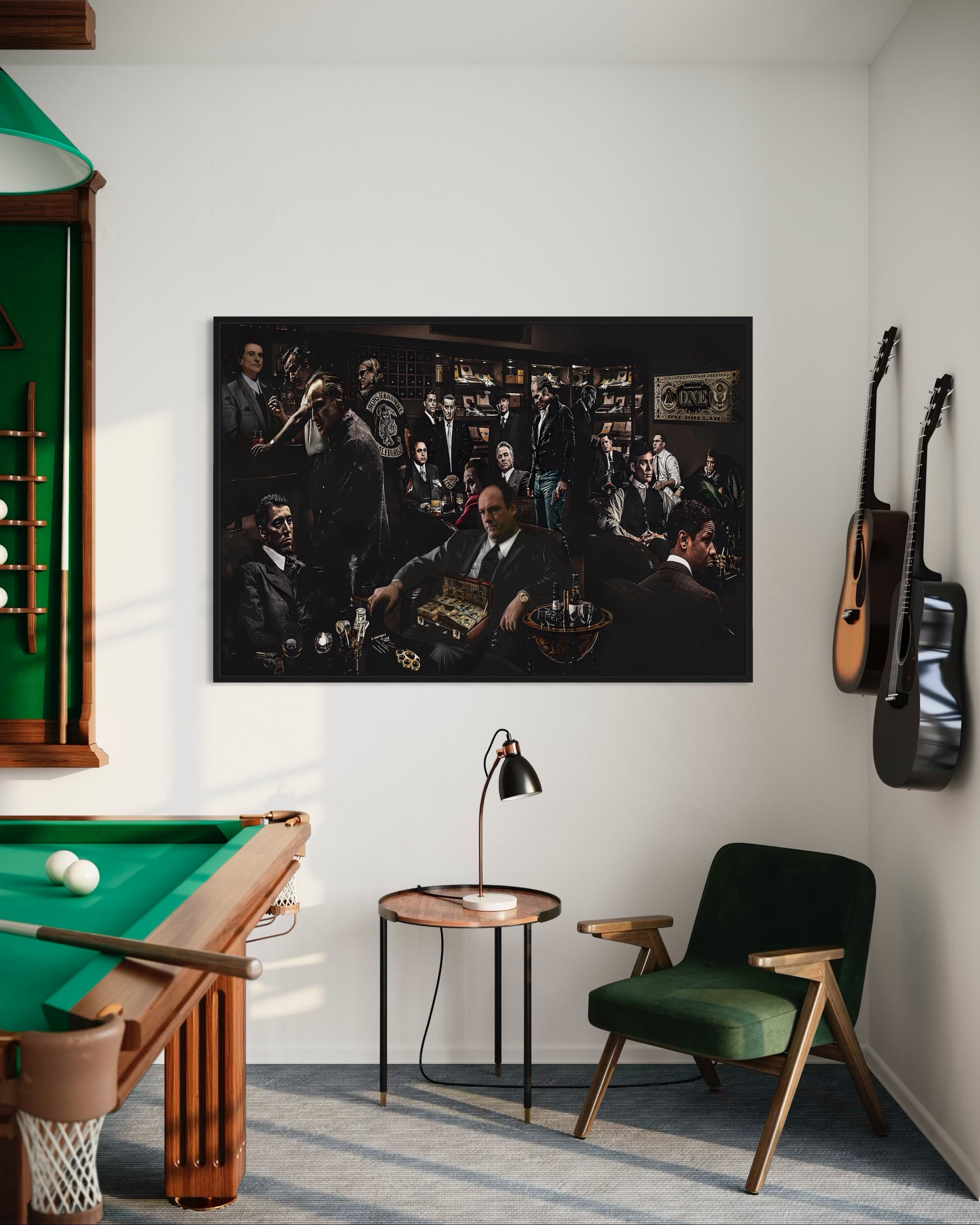 Art design: A bold collage featuring iconic movie gangsters—brings cinematic style to any room.